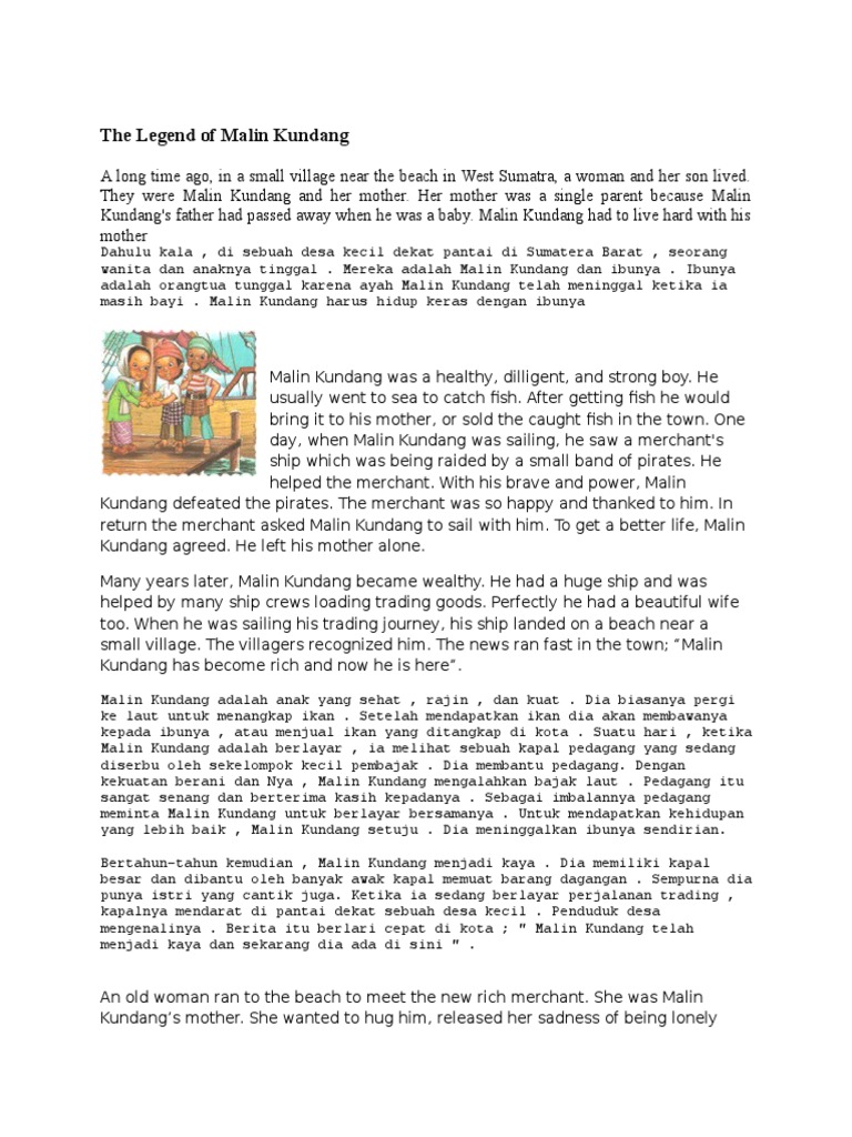 Keluarga ini hidup serba kekurangan dan memprihatinkan. He usually went to sea to catch fish. Dialog cerita rakyat malin kundang singkat pendek tetapi lengkap dengan dialog antar tokoh yang dapat diperankan oleh 5 orang sebagai contoh drama pendek. Dalam soal itu, para siswa diminta untuk menganalisis cerita fiktif, berupa malin kundang grew up as a skillful young boy. He always helps his mother to earn some money.